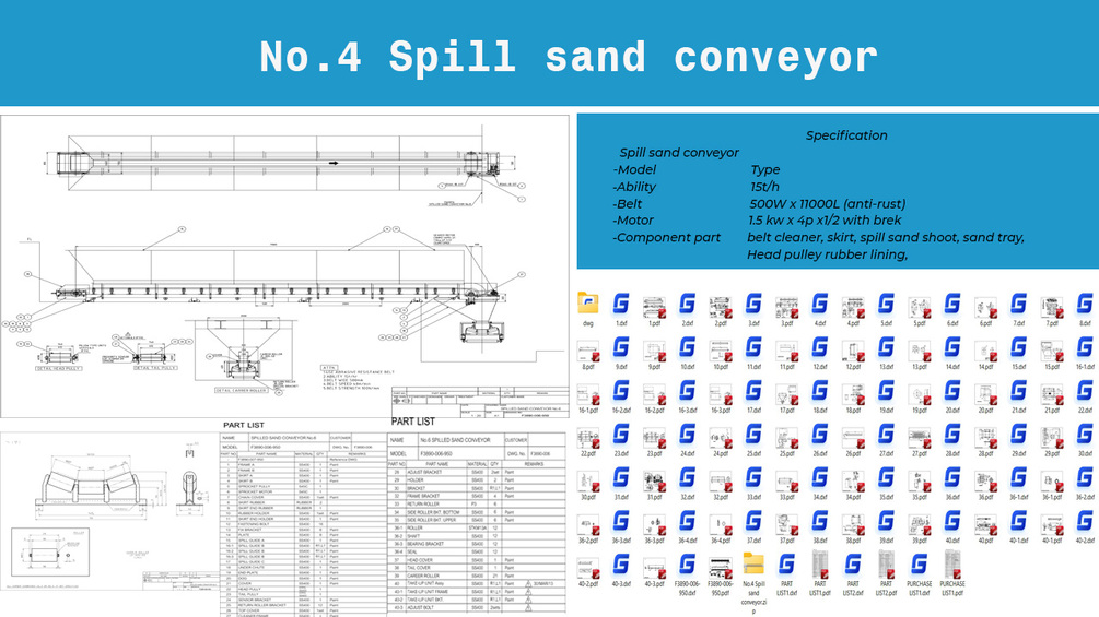 No.4 Spill sand conveyor สายพานลำเลียงทราย แบบแนวราบ ( File CAD 2D)